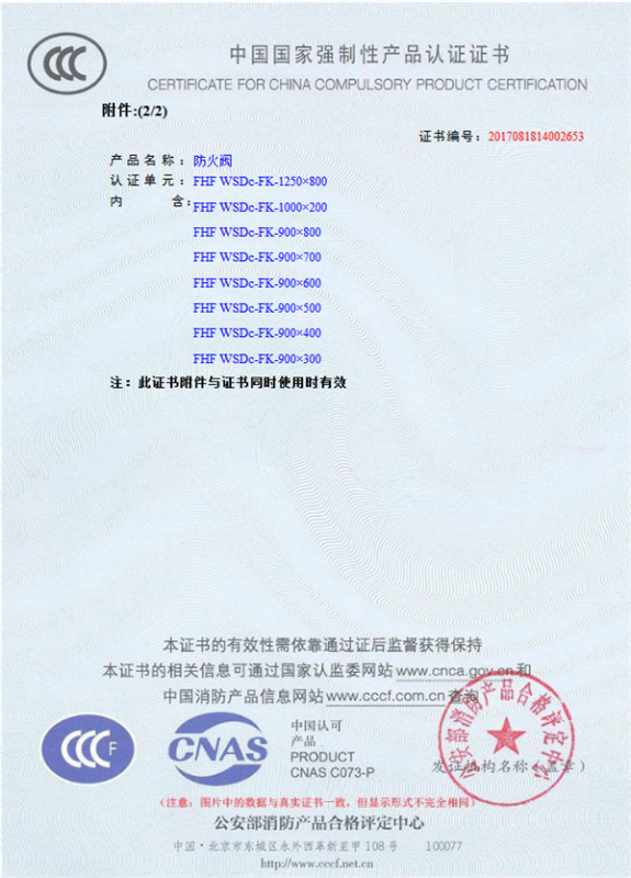 產(chǎn)品全通過國家消防檢測(cè)中心檢測(cè),獲得CCC證書
